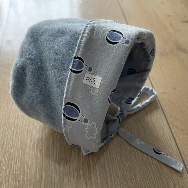 Ce béguin en coton et velours de laine complètement réversible gardera la tête de votre enfant bien au chaud pour l’hiver.