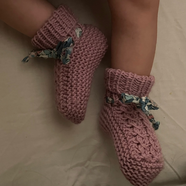 Ces petits chaussons en laine 100% mérinos baby garderont les pieds des bébés bien au chaud.